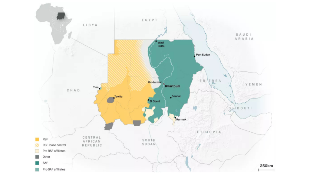 Tras tres años de guerra, la situación militar se ha estancado y se han definido dos territorios controlados por el Gobierno y las FAR, principalmente. El oeste, incluyendo la práctica totalidad de Darfur es controlado por las FAR, mientras que el este y la capital, sigue en manos del Gobierno de Jartum. Ambos bandos han llevado a cabo masacres y violación de los derechos humanos de población civil y ninguno constituye un interlocutor legítimo, aunque de facto la comunidad internacional considera a Al Burhan el presidente. Es importante recordar que el general Al Burhan llevó a cabo gran parte de su carrera militar en Darfur durante el genocidio, a partir de 2003, y que Dagalo proviene de los paramilitares extremistas yanyauid, que se convirtieron en un brazo paramilitar del ejército y que han sido acusados de tener un papel fundamental en la represión y la violación sistemática de los derechos humanos de la población no árabe o arabizada de Darfur o Kordofán. Al Burhan pertenece a las élites árabes de ideología extremista del entorno del presidente depuesto Omar al Bashir, y Dagalo no fue más que uno de sus brazos ejecutores en Darfur. Por tanto, ambos participan de una visión supremacista y racista de los árabes frente a los que consideran “africanos” como serían los fur o los masalit, independientemente de que todos sean musulmanes.